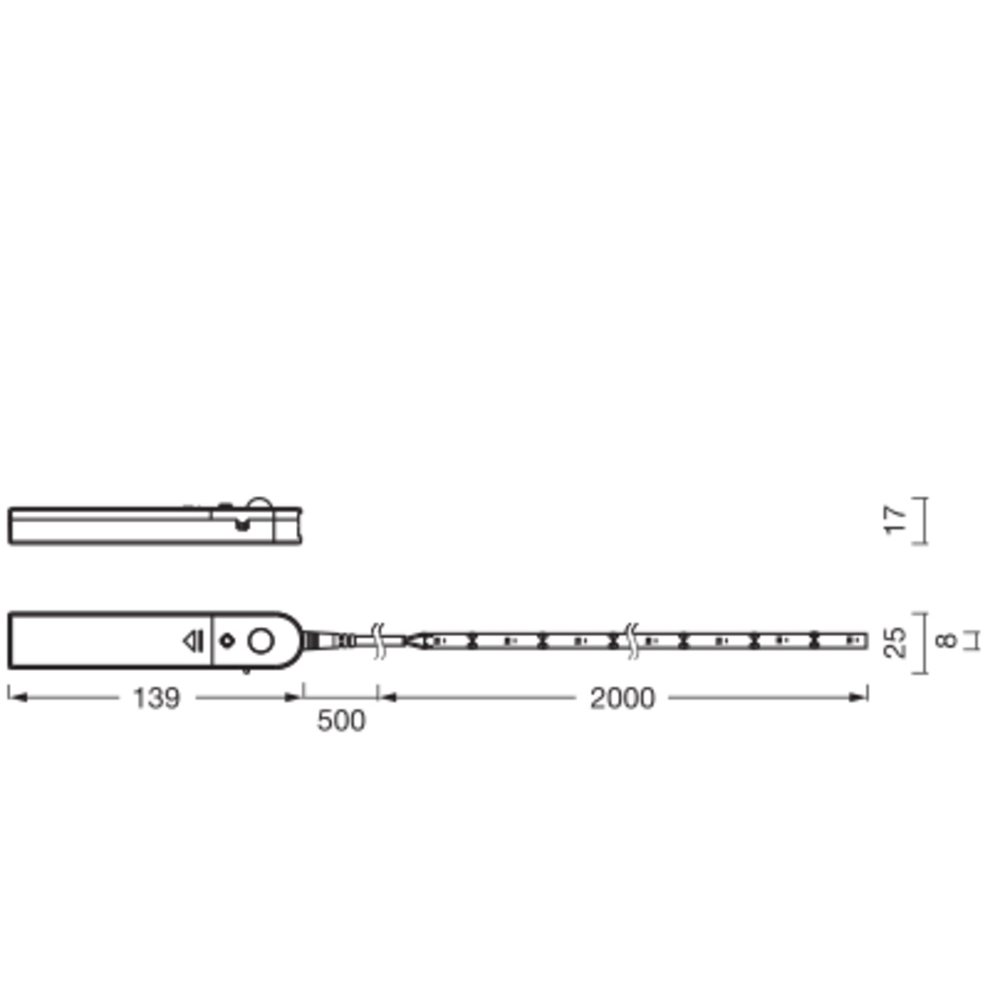 LED pásik na batériu s teplým bielym svetlom a pohybovým senzorom | Farba svetla: Teplá biela | Menovitý výkon: 3,60 W | Menovité napätie: 6 V | Teplota chromatickosti: 3000 K | Svetelný tok: 150 lm | Vyžarovací uhol: 120 ° | Dĺžka (vrátane okrúhlych svietidiel): 2000,00 mm | Výška (vr. valc. svietidiel): 17,00 mm | Šírka (vrátane okrúhlych svietidiel): 8,00 mm | Stredná doba života L70/B50 @ 25 °C: 25000 h | Druh ochrany: IP20 | Trieda ochrany: III | Štandardy: CE / UKCA | Záruka: 2 roky