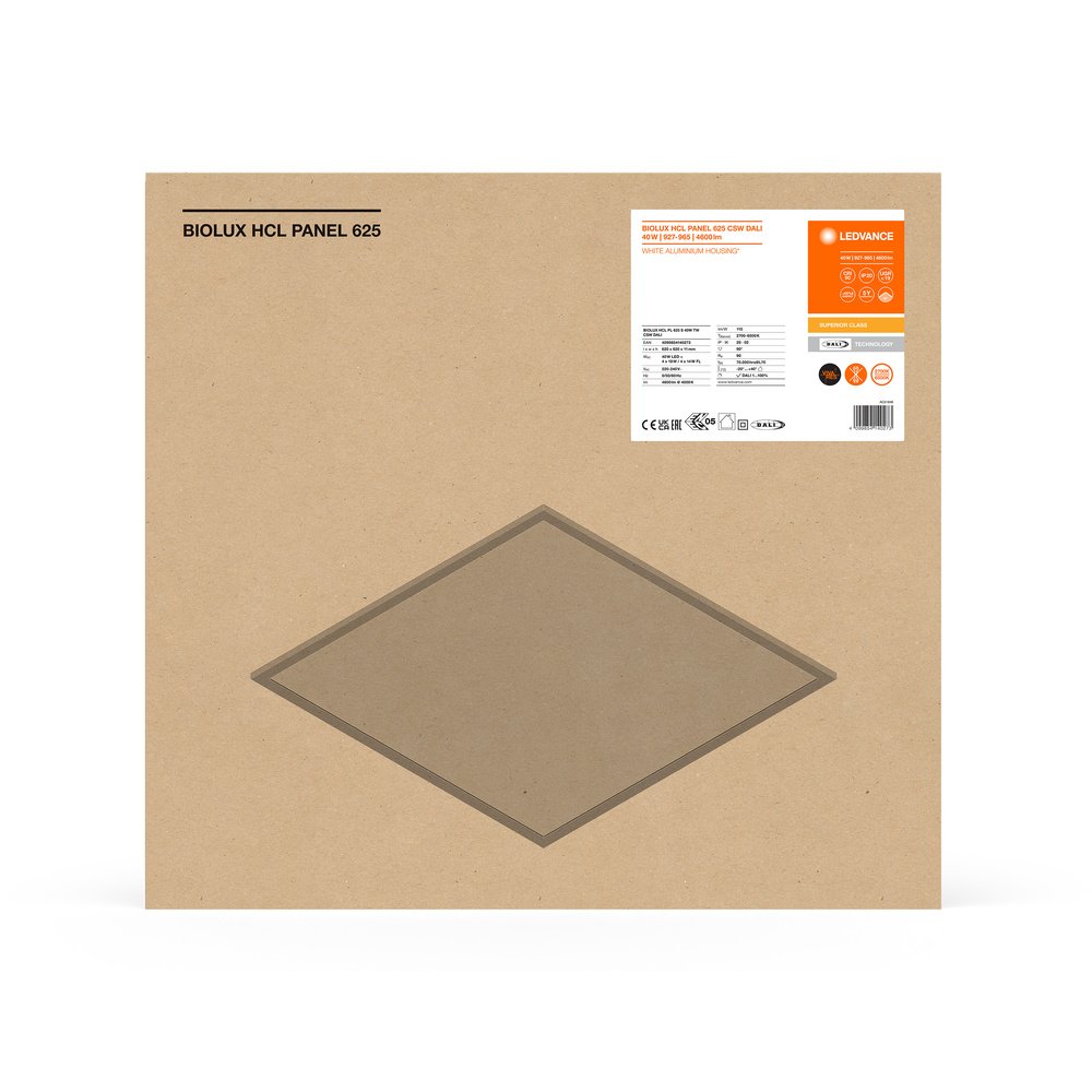 Vstavané panelové svietidlá, Tunable White, 115 lm/W, inštalácia bez rádia, technológia DALI-2 IoT. Vlastnosti výrobku: Svietidlo s funkciou DALI-2 pripravené na IoT. Nastaviteľná teplota chromatičnosti pomocou laditeľnej bielej: 2700…6500 K. Veľmi vysoký index podania farieb Ra: > 90. Vysoko kvalitný extrudovaný hliníkový rám. K dispozícii verzia s predmontovaným konektorom Wago (č. položky: WAGO 771-9985/206-301) pre Panel 625 CSW. Vhodné pre núdzové inštalácie s centrálnou batériou podľa EN 60598-2-22. Výhody výrobku: Vhodné svietidlo na ovládanie svetla pomocou VIVARES DALI, VIVARES DALI HCL a DALI-2. Umožňuje individuálne riešenie osvetlenia Tunable White v kombinácii s kompatibilnými ovládačmi DALI-2. Kvalita svetla CRI 90 pre pohodovejšiu atmosféru v aplikáciách HCL. Sedemročná záruka na systém pri prevádzke v systéme VIVARES DALI. Kompatibilný s VIVARES CLOUD SERVICE na monitorovanie energie. Možnosť priechodného zapojenia pomocou priloženej káblovej svorky. Externý ovládač DALI2 pre flexibilnú a jednoduchú inštaláciu. Spoľahlivá redukcia oslnenia (UGR < 19). Oblasti použitia: Priama náhrada za svietidlá so žiarivými svetlami. Kancelárie, konferenčné miestnosti. Recepcia, vstupné haly a chodby. K dispozícii pre veľkosť rastra 600 mm x 600 mm, 625 mm x 625 mm a 1200 x 300 mm. Výbava / príslušenstvo: K dispozícii je príslušenstvo pre niekoľko spôsobov montáže. Vrátane externého predradníka. Vrátane bezpečnostnej sady (bezpečnostné lanko a držiaky).. Predinštalovaná káblová svorka pre priechodné vedenie.