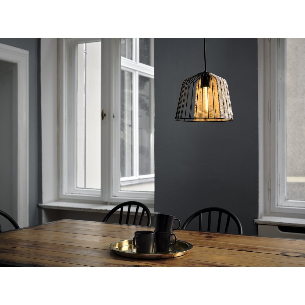 Dekoratívne svietidlá z ratanu a kovu s päticou E27. |