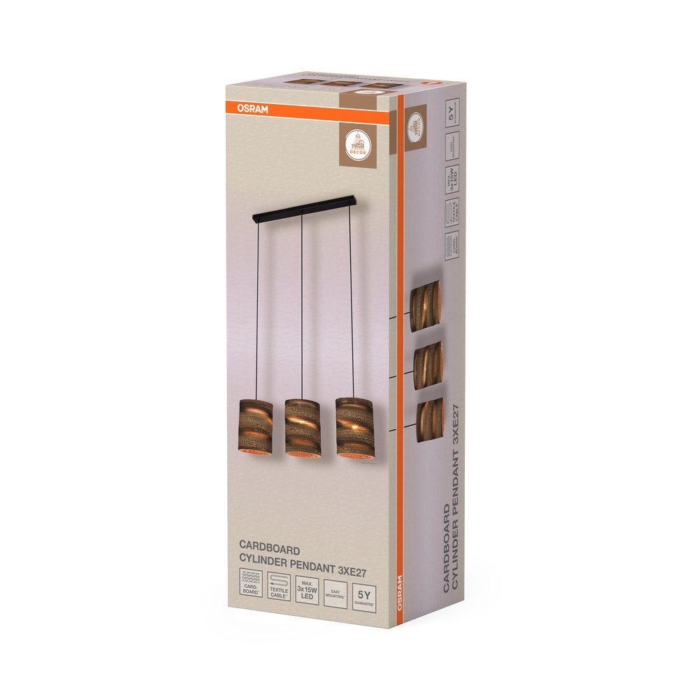 Decor Cardboard Cylinder Pendant 3XE27 Brown
