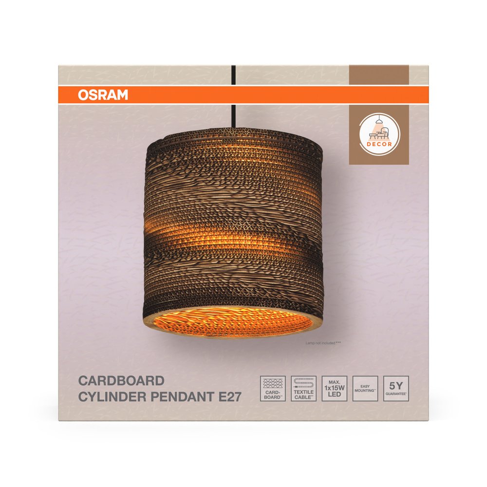 Decor Cardboard Cylinder Pendant E27 Brown