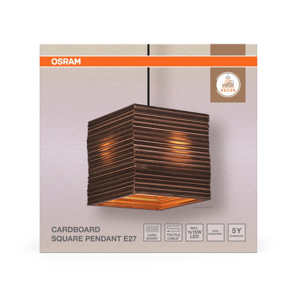 Decor Cardboard Square Pendant E27 Brown