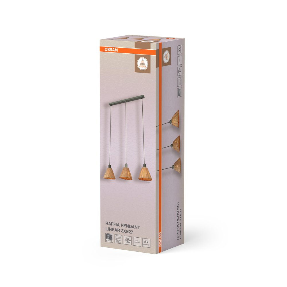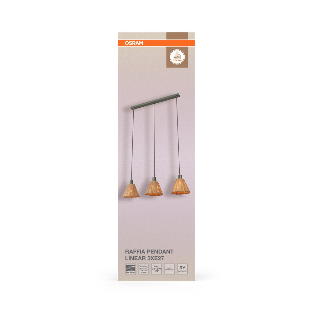 Decor Raffia Pendant Linear 3XE27 Green