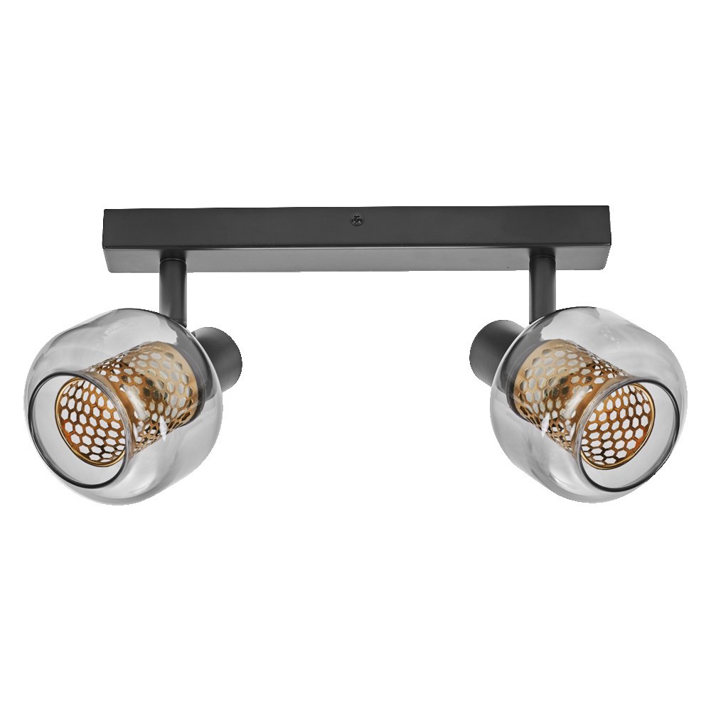Stropné svietidlá vyrobené z kombinácie zlatej voštinovej mriežky s dymovým sklom s päticou E14. |