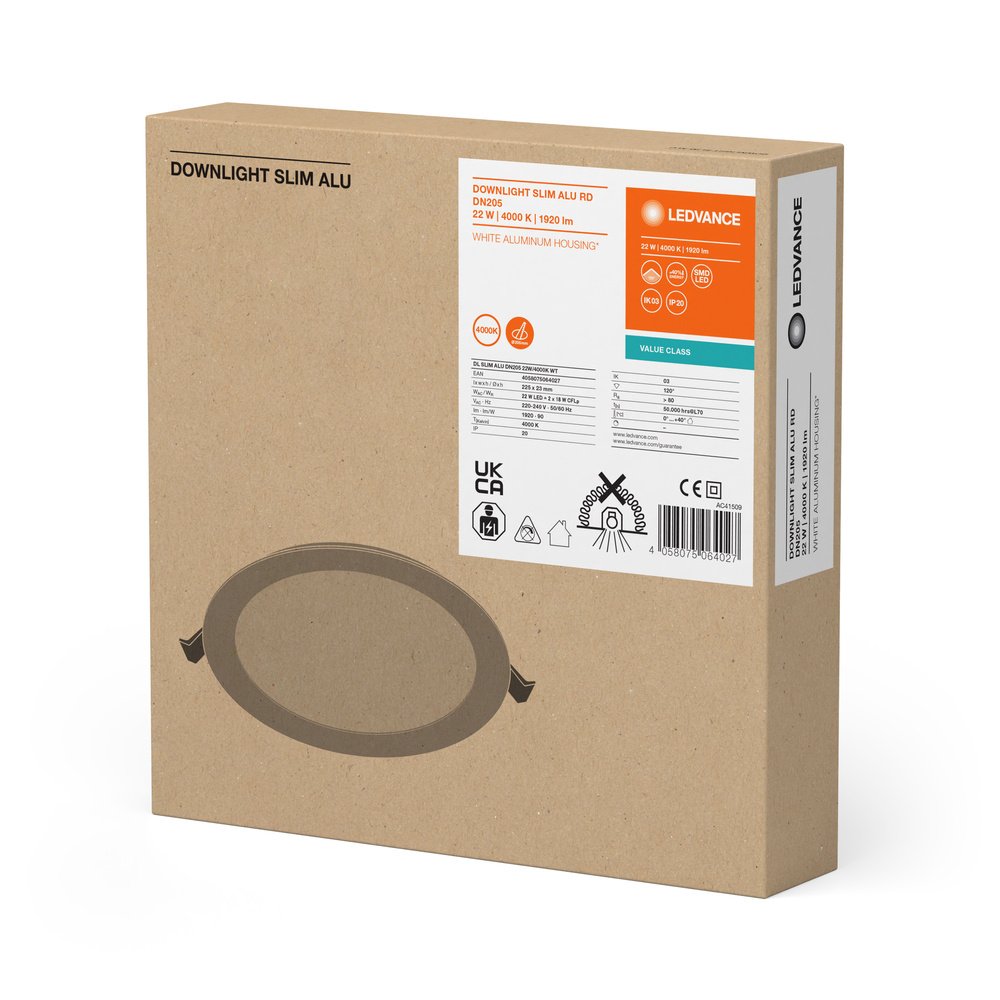 DOWNLIGHT SLIM ALU GEN 1 205 22 W 4000 K WT