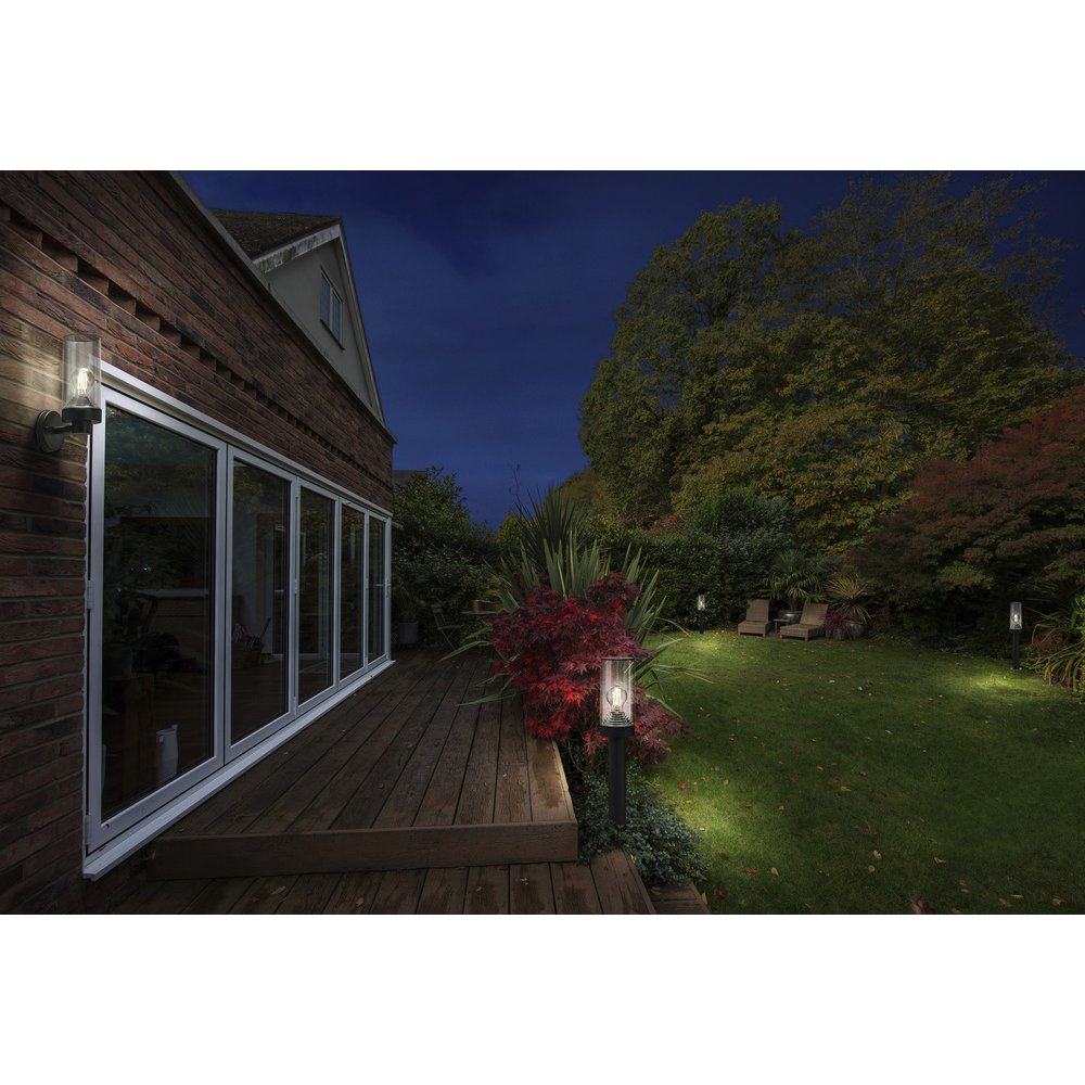 Stojanové a nástenné svietidlá s tmavo šedým puzdrom z nerezovej ocele a hliníka a päticou E27.