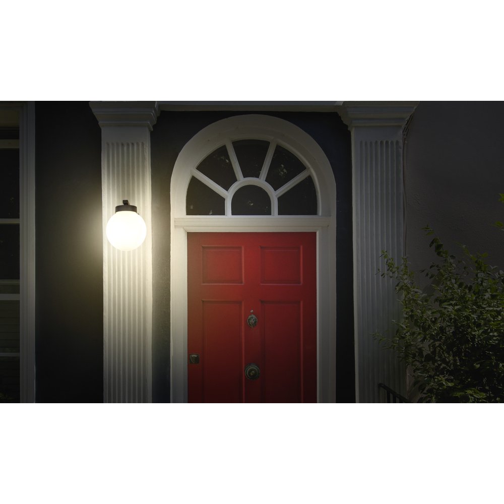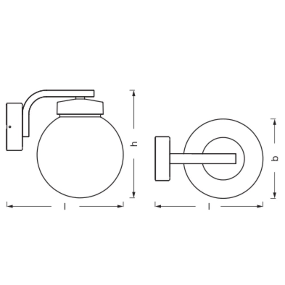 Tmavosivé hliníkové nástenné svietidlo s päticou E27 a difúzorom v tvare gule, ideálne pre vchody. |