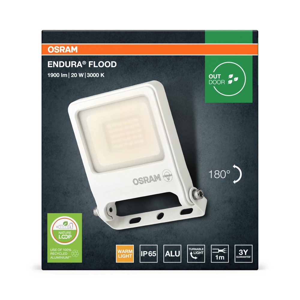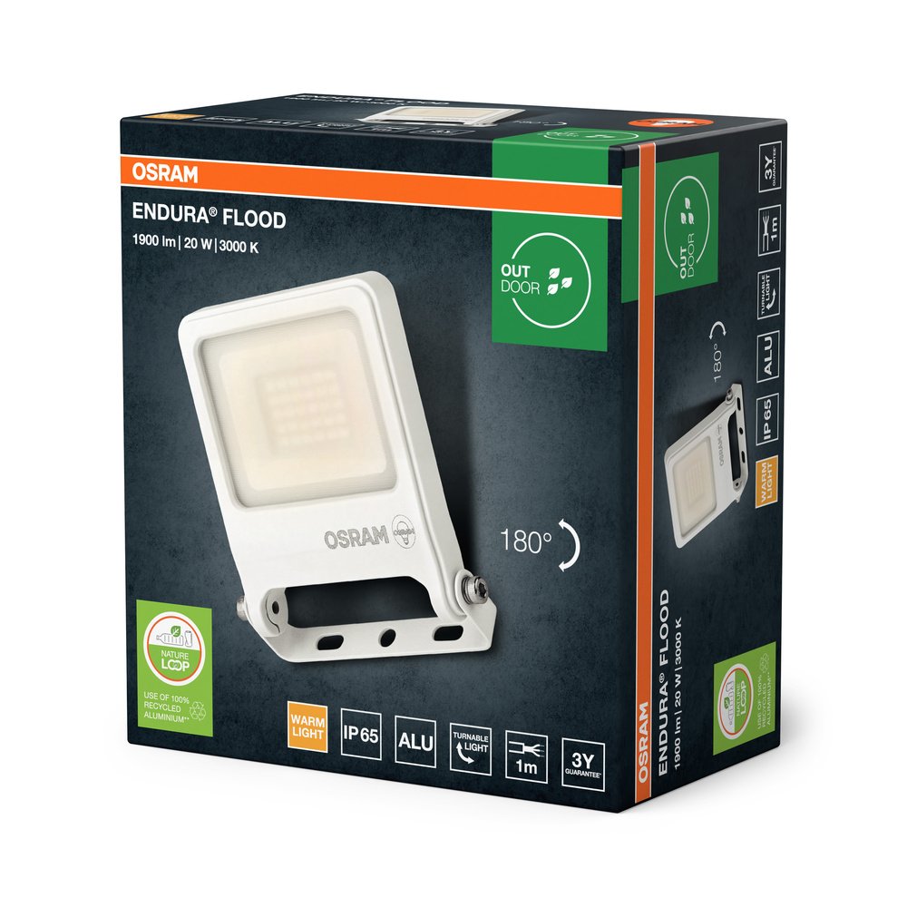 Svietidlá Compact Floodlight s 3 000 K, z recyklovaného hliníka.