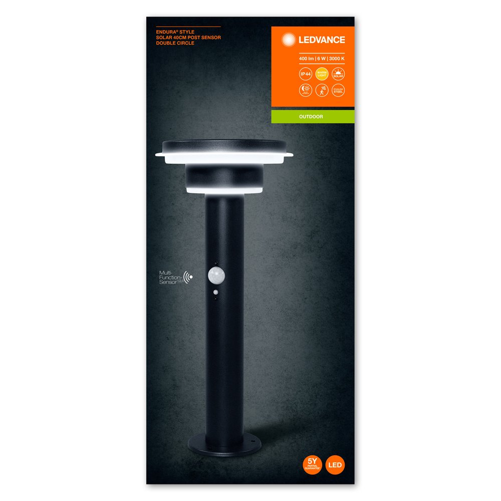 ENDURA® STYLE SOLAR DOUBLE CIRCLE 40cm Post Sensor Double Circle 6W Black