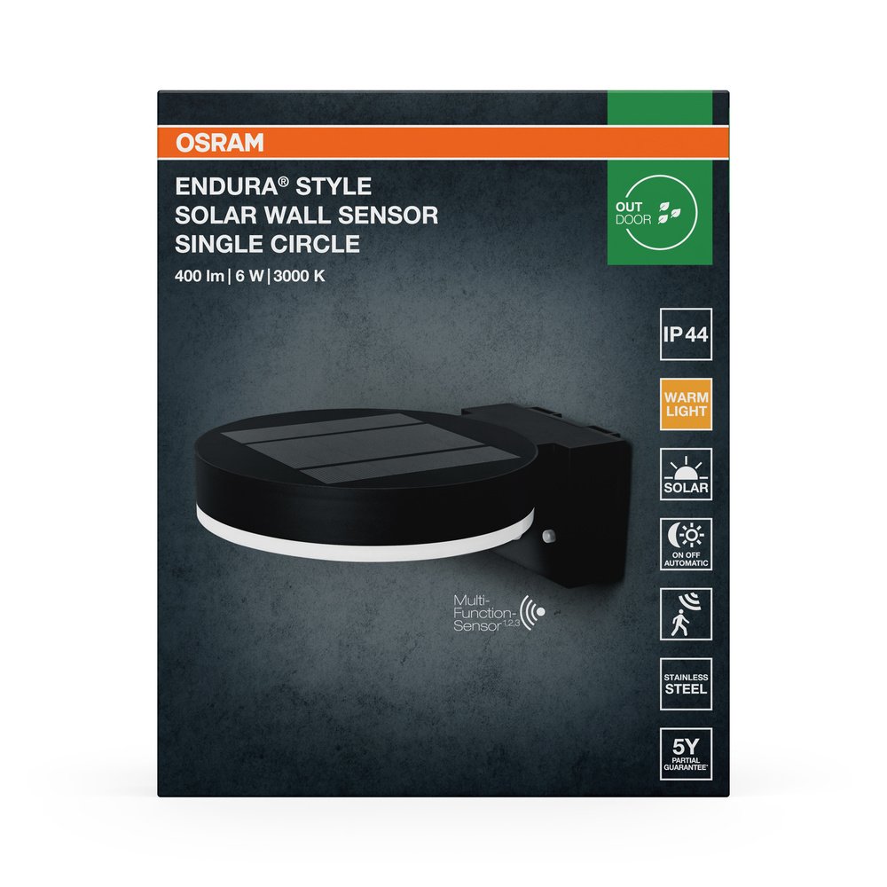 ENDURA® STYLE SOLAR SINGLE CIRCLE Wall Sensor Single Circle 6W Black
