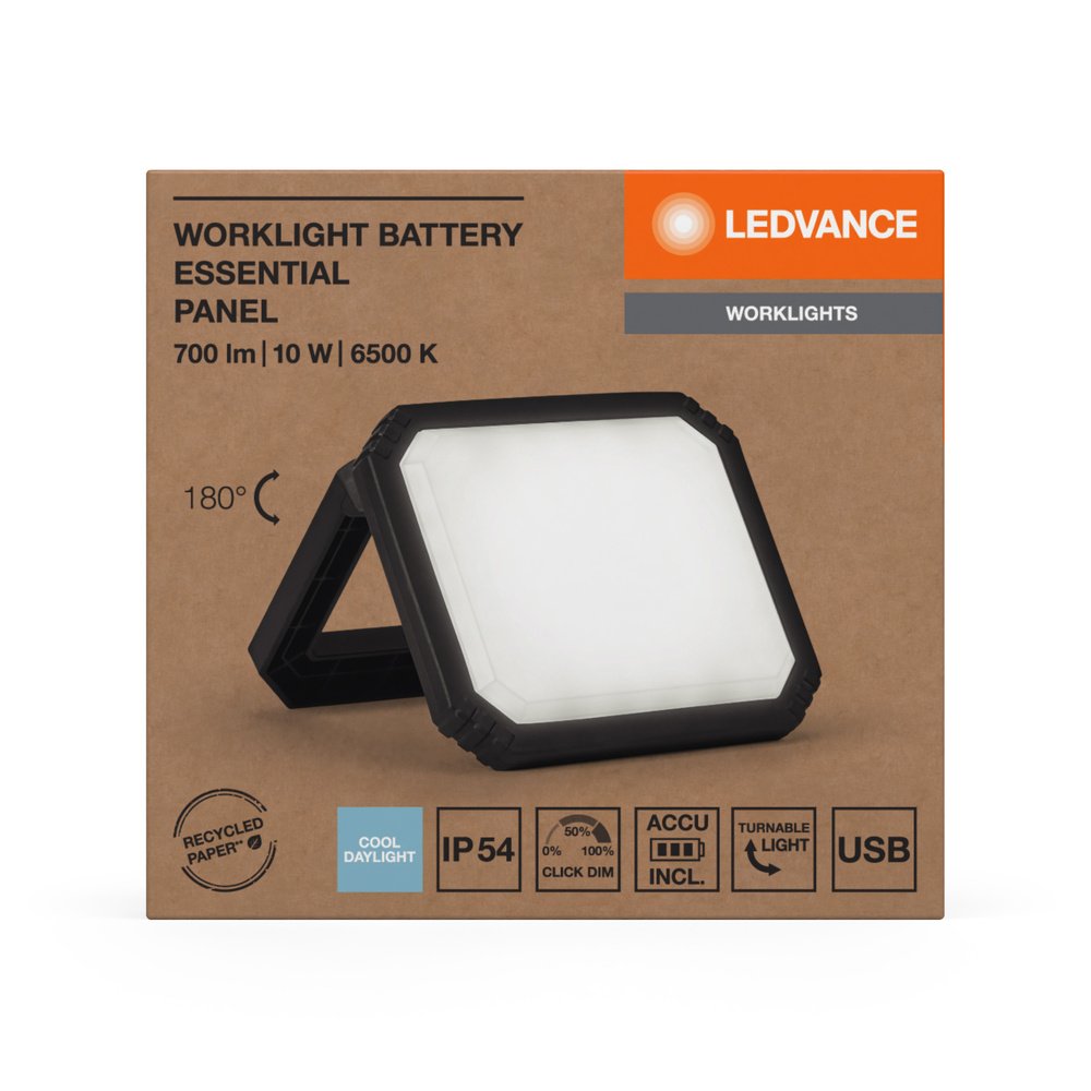 ESSENTIALS WORKLIGHT BATTERY Panel 10W 865 Black