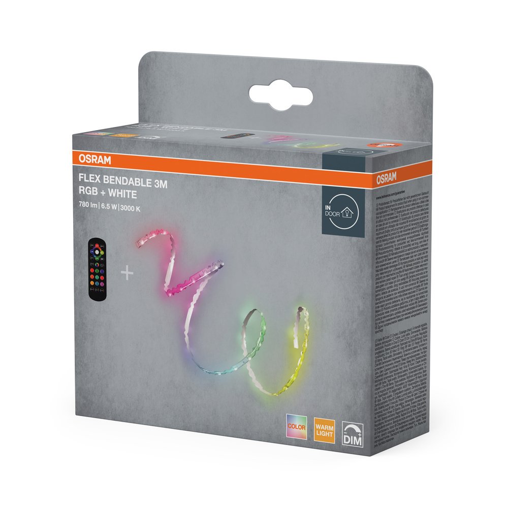 Ohýbateľný LED PÁSOK pre aplikáciu na zaoblené alebo rohové plochy | Flexibilný, samolepiaci RGBW/ teplý biely opasok | Menovitý výkon: 6,50 W | Menovité napätie: 220…240 V | Svetelný tok: 680 lm | Vyžarovací uhol: 120 ° | Dĺžka (vrátane okrúhlych svietidiel): 3000,00 mm | Výška (vr. valca. svietidiel): 1,80 mm | Šírka (vrátane okrúhlych svietidiel): 10,00 mm | Stredná doba života L70/B50 @ 25 °C: 30000 h | Druh ochrany: IP20 | Trieda ochrany: II | Štandardy: CE | Záruka: 2 roky