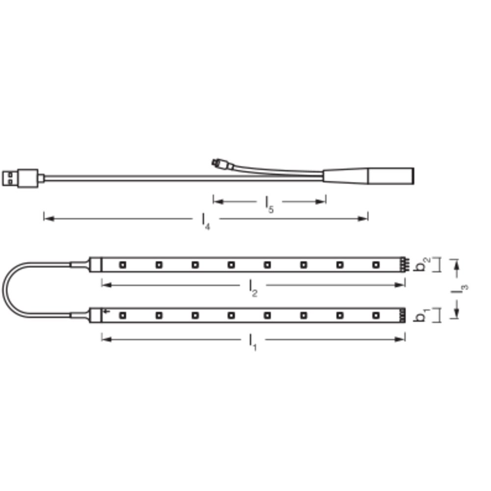 Dekoratívne farebné pásky LED pre vnútorné použitie, samolepiace, pripojiteľné cez USB | Ovládanie farieb RGB | Menovitý výkon: 4,00 W | Menovité napätie: 5 V | Vyžarovací uhol: 120 ° | Dĺžka (vrátane okrúhlych svietidiel): 1500,00 mm | Výška (vr. valc. svietidiel): 3,00 mm | Šírka (vrátane okrúhlych svietidiel): 10,00 mm | Stredná doba života L70/B50 @ 25 °C: 30000 h | Druh ochrany: IP20 | Trieda ochrany: III | Štandardy: CE / UKCA | Záruka: 2 roky