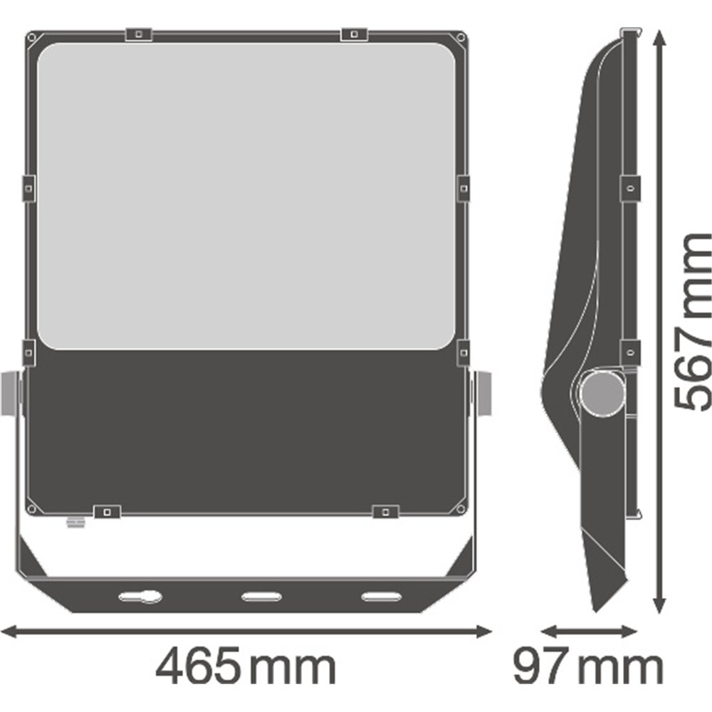 Svietidlo Floodlight s otočným symetrickým vyžarovaním na osvetľovanie priestorov z vysokých stĺpov. Vlastnosti výrobku: Vysoká svetelná účinnosť: až 140 lm/W. Otočné symetrické vyžarovanie na osvetľovanie priestorov z vysokých stĺpov. Montáž pod uhlom (45°) a náklon až 180°. Stupeň krytia: IP66. Odolnosť proti nárazu: IK08. Teplota okolia pri prevádzke: –30…+50 °C. Vysoká ochrana proti prepätiu: až 10 kV (L/N-PE), 6 kV (L-N). Integrovaný odvzdušňovací otvor zabraňujúci vzniku kondenzácie vo vnútri svietidla. Pripojenie 2m kábla, potrebná elektroinštalácia. Výhody výrobku: Úspora energie až 90 % v porovnaní s halogénovými reflektormi. Úspora energie až 45% v porovnaní so svietidlami s tradičnými výbojkami. Jasné, robustné a odolné. Rovnomerný rozptyl svetla a minimálne oslnenie. Nulová hodnota hornej účinnosti svietidla (ULOR 0 %) pri montáži v náklone 0°. Montážny otvor pre jednoduchosť inštalácie. 5-ročná záruka. Oblasti použitia: Priama náhrada za svietidlá používajúce HID svetelné zdroje. Vonkajšie použitie (IP66). Parkovisko. Verejné priestory. Priemysel. Športové zariadenia. Osvetlenie veľkých priestranstiev. D-značky podľa EN 60598-2-24 pre spoločnú jednotku s nebezpečenstvom požiaru, napr. kvôli hromadeniu prachu. Bezpečnostné informácie: Všetky elektrické pripojenia musia spĺňať kvalifikovanú osobu.. Externý flexibilný kábel tohto svietidla nie je možné vymeniť. Pokiaľ je poškodená, je potrebné svietidlo vyradiť z prevádzky a zlikvidovať ho. Svorkovnica nie je súčasťou dodávky. Inštaláciu musí spĺňať kvalifikovaná osoba.. Pozor – nebezpečenstvo úrazu elektrickým prúdom.