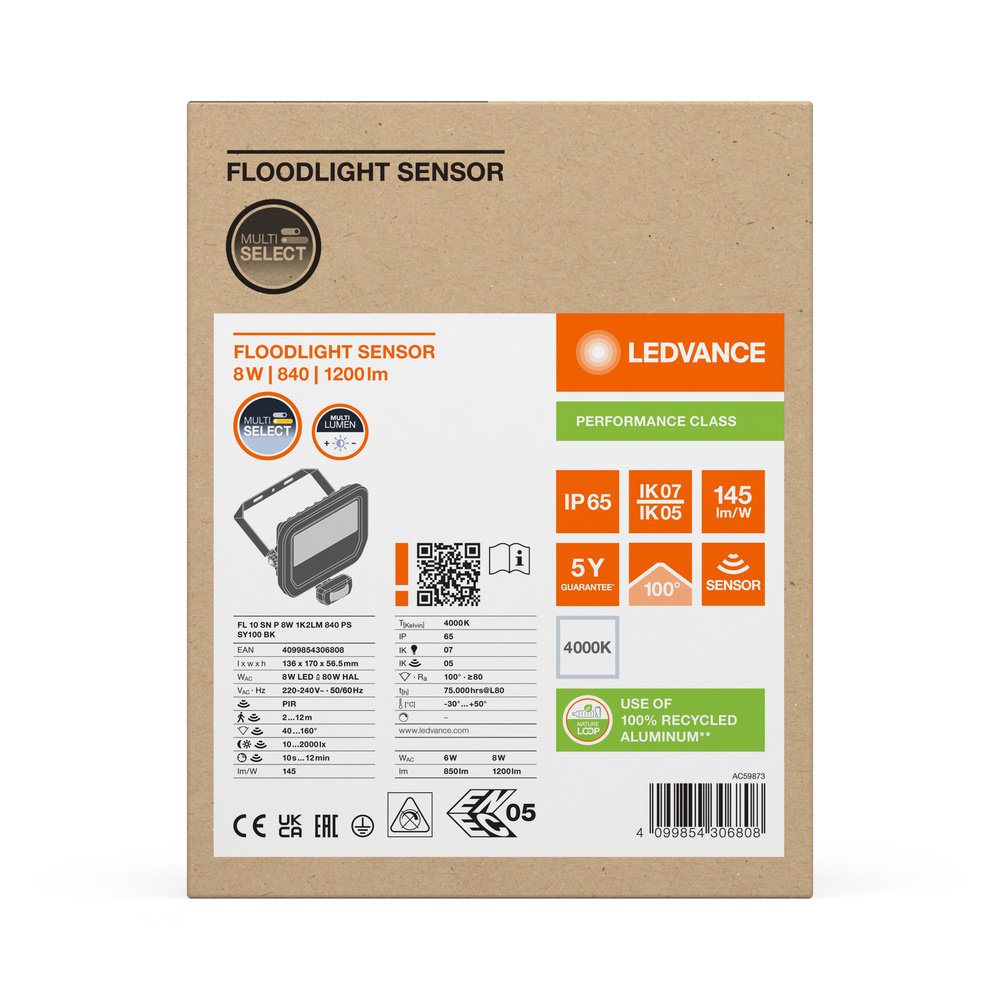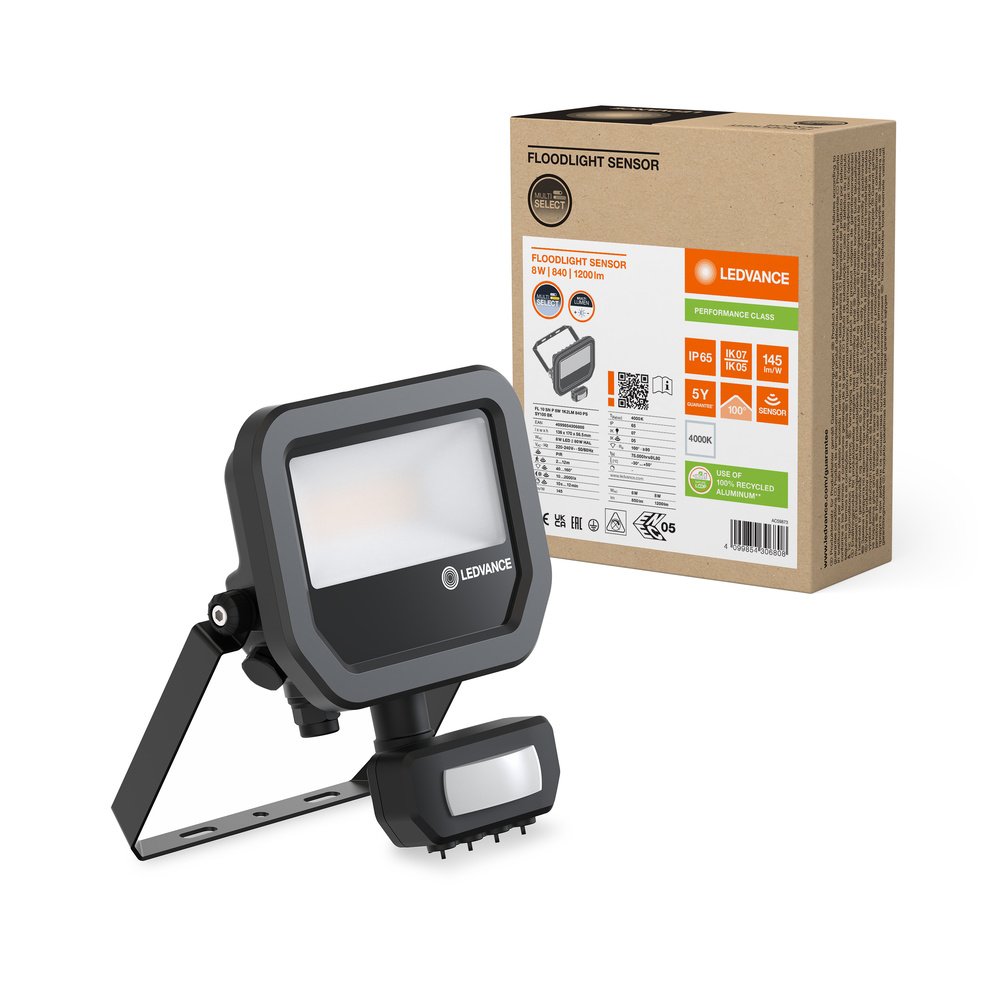 FLOODLIGHT SENSOR 10 8W 1K2LM 840 PS SY100 BK