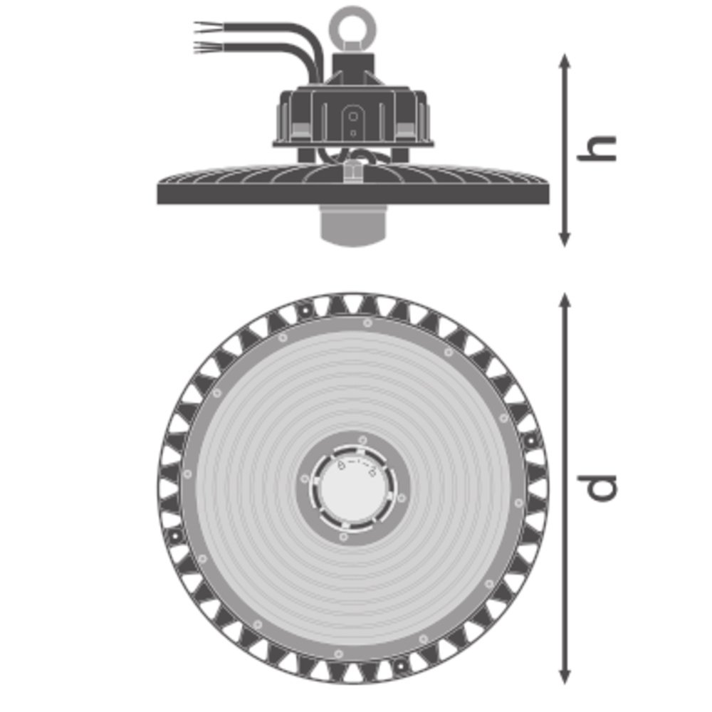 High-bay svietidlá v IP65 s vysokofrekvenčným senzorom. Vlastnosti výrobku: Vysokofrekvenčný senzor na detekciu denného svetla a pohybu. Rozdielny svetelný tok a uhol vyžarovania pre montážne výšky ~ 6 m až 10 m pri 4000 K. Výhody výrobku: Viac možností upravenia senzora, detekcia denného svetla a doba držania. Vysoký merný svetelný výkon. Úspora energie až 64% v porovnaní s bežnými výškovými svietidlami. 5-ročná záruka. Vhodné na použitie v prašných a vlhkých miestach vďaka vysokej hodnote IP. Oblasti použitia: Náhrada za svietidlá „high bay“ s obsahom ortuti alebo halogenidovej výbojky. Sklady. Logistické haly. Priemysel. Vysoký strop (napr. nákupné centrá, komplexné objekty, haly). Výbava / príslušenstvo: Vrátane senzora, montážneho háčika a montážneho držiaka. Reflexné, žiaruvzdorné a diaľkové ovládanie je k dispozícii ako samostatné príslušenstvo.