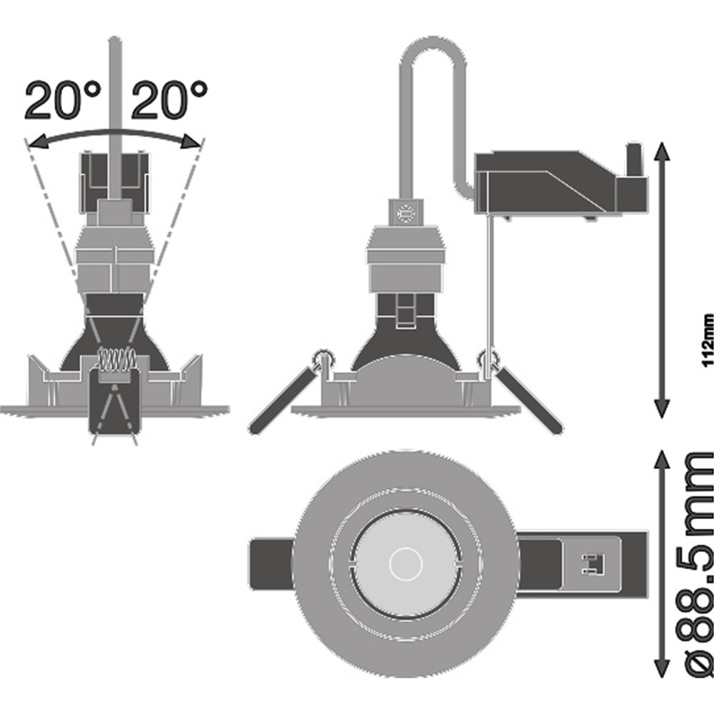 Bodové svetlo je otočné o 20 ° do všetkých smerov.