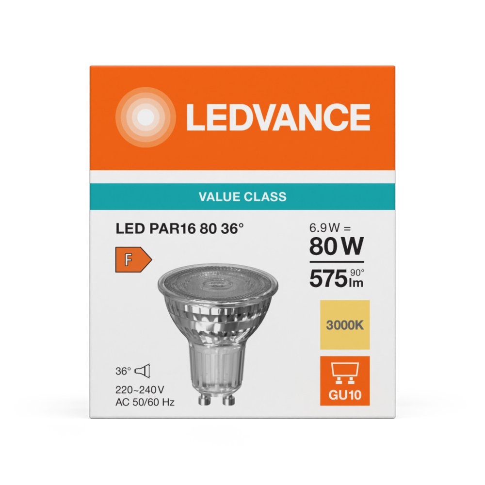 Vlastnosti výrobku LED reflektorové žiarovky PAR16 s konvenčnou kolíkovou päticou. Vlastnosti výrobku: LED alternatíva za halogénové žiarovky. Nestmievateľné. Pätica: GU10. Svetelný zdroj je vyrobený zo skla. Dobrá kvalita svetla, index podania farieb Ra: ≥ 80. Výhody výrobku: Rýchla, jednoduchá a bezpečná výmena bez prepojovania. Dizajn, rozmery, svetelný tok porovnateľné so žiarovkou alebo halogénovou žiarovkou. Nízke náklady na údržbu vďaka dlhej životnosti. Žiadne UV a nízke infračervené žiarenie vo svetelnom kuželi. Okamžite 100% svetla, bez nábehu. Nižšia spotreba energie ako u žiaroviek alebo halogénových žiaroviek. Oblasti použitia: Predajne a výstavné priestory. Domáce použitie. Komerčné použitie. Zvýrazňujúce osvetlenie. Len na vnútorné použitie, nevhodné na vonkajšie použitie. Bezpečnostné informácie: Nedotýkajte sa svetelného zdroja, ak je rozbitý.. Nepoužívajte, ak je vonkajší svetelný zdroj chybný.