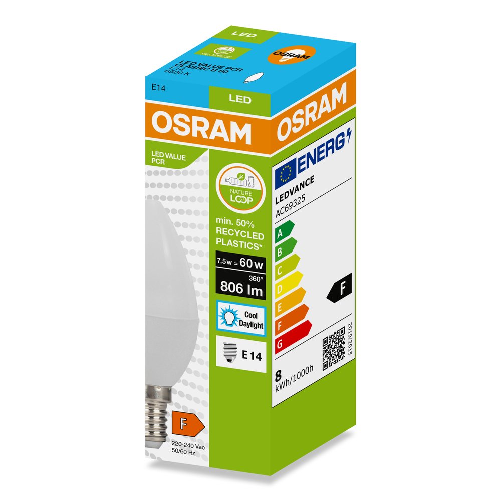 LED svetelné zdroje v tvare klasickej žiarovky typu B, vyrobené z recyklovaného plastu