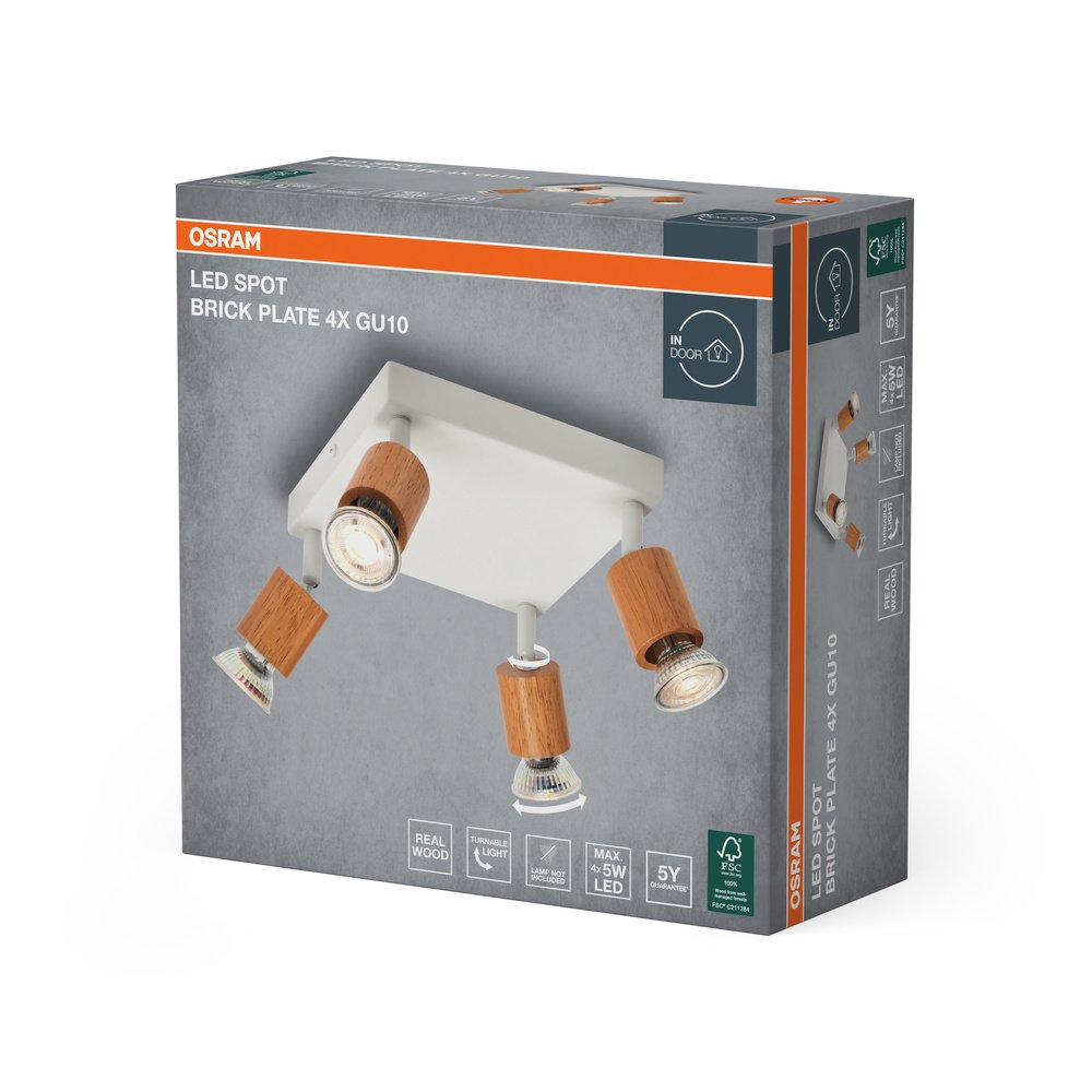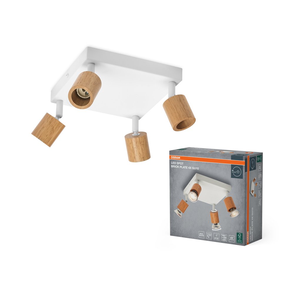 LED Spot Brick 4xGU10 Plate White and Wood