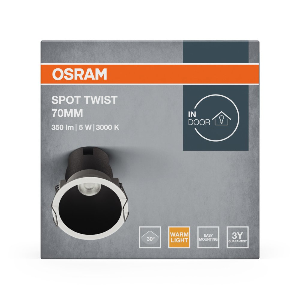 LED SPOT RECESS TWIST PRO 70mm 5W 3000K White Black