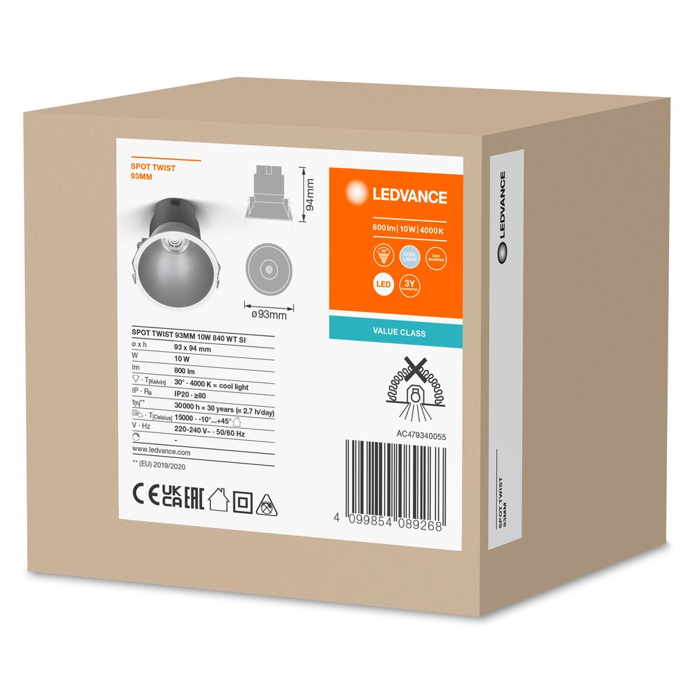 LED SPOT RECESS TWIST PRO 93mm 10W 4000K White Silver