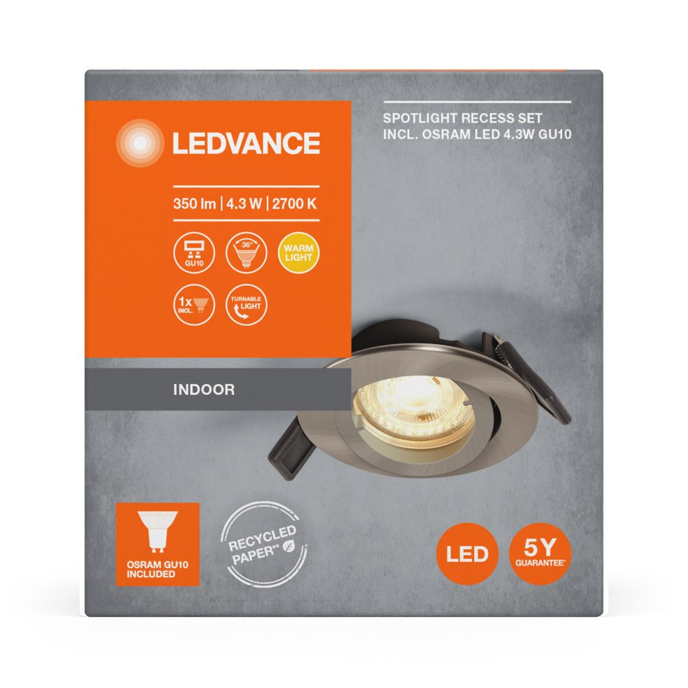 LED SPOT RECESS TWISTLOCK GU10 Incl. Osram LED 4.3W GU10 Brushed Nickel
