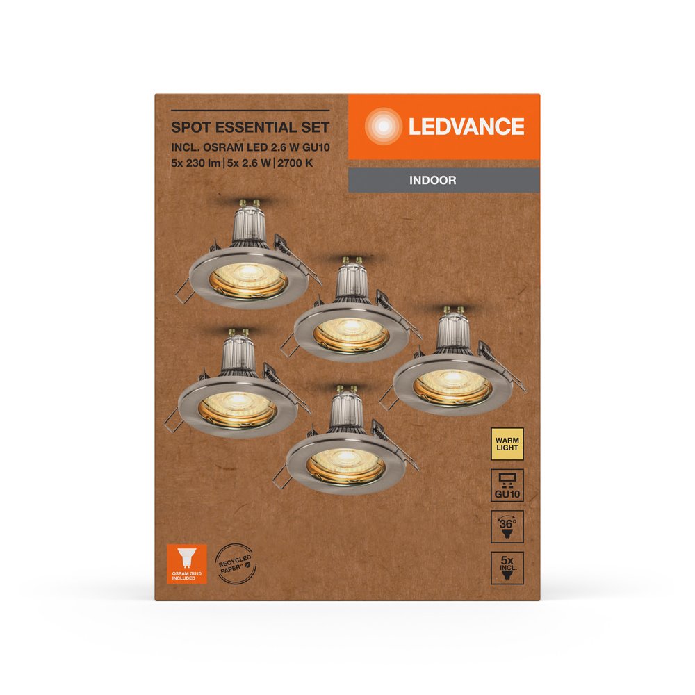 LED SPOT SET RECESS ESSENTIAL GU10 5x2.6W GU10 Brushed Nickel