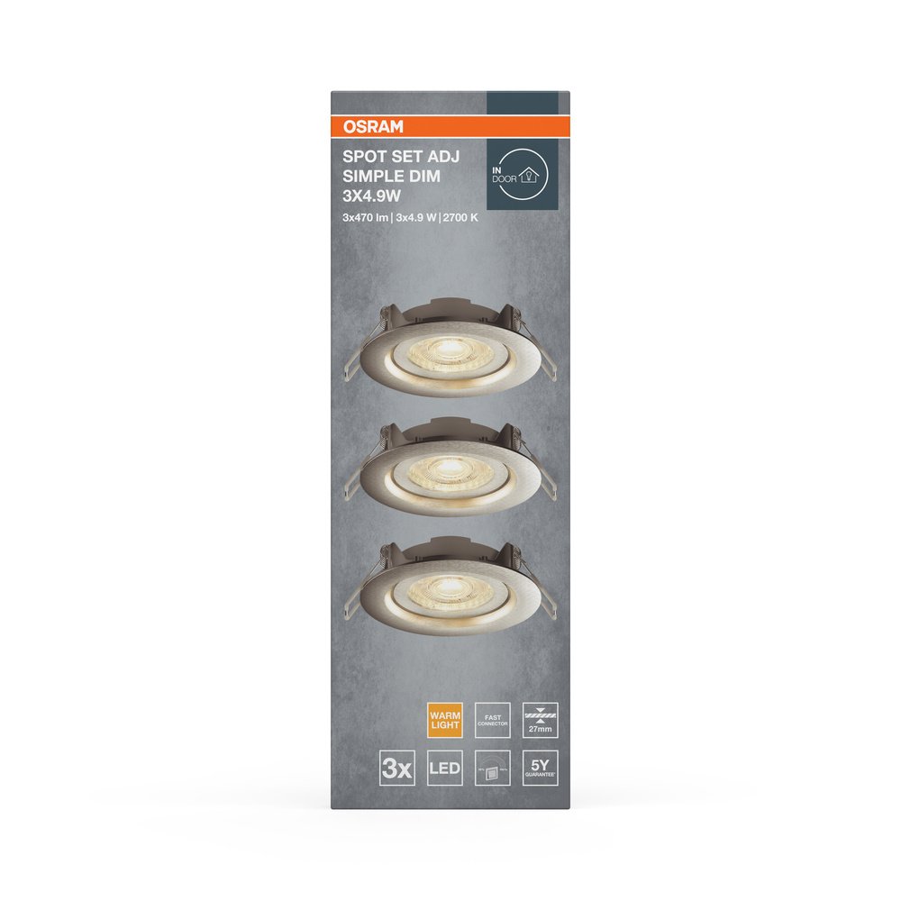 LED SPOT SET RECESS SIMPLE DIM 3 x 4.9W 2700K Brushed Nickel