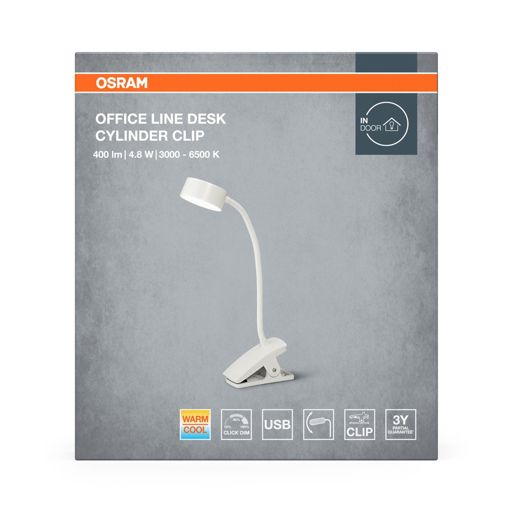 Office Line Desk Cylinder Clip 4.8W TW Dimmable White