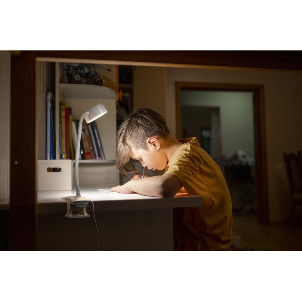 Stolné USB svietidlo, stmievateľné v 3 krokoch, s funkciou nastavenia teploty farieb, s klipsom.