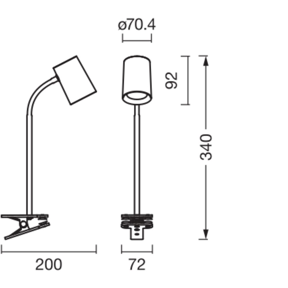 Stolové svietidlo s flexibilným ramenom, päticou GU10 a klipsom. |
