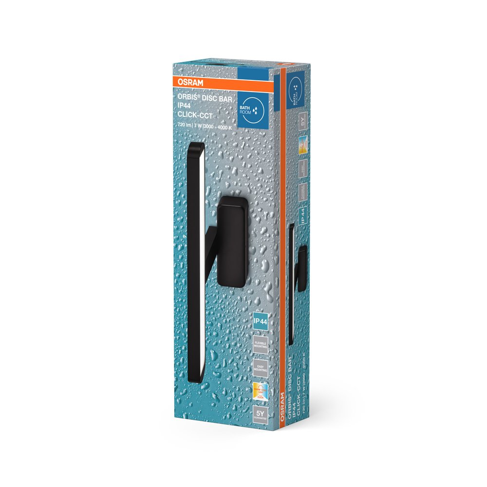 Orbis Disc Bar Bathroom Mirror 400mm Black Click-CCT IP44