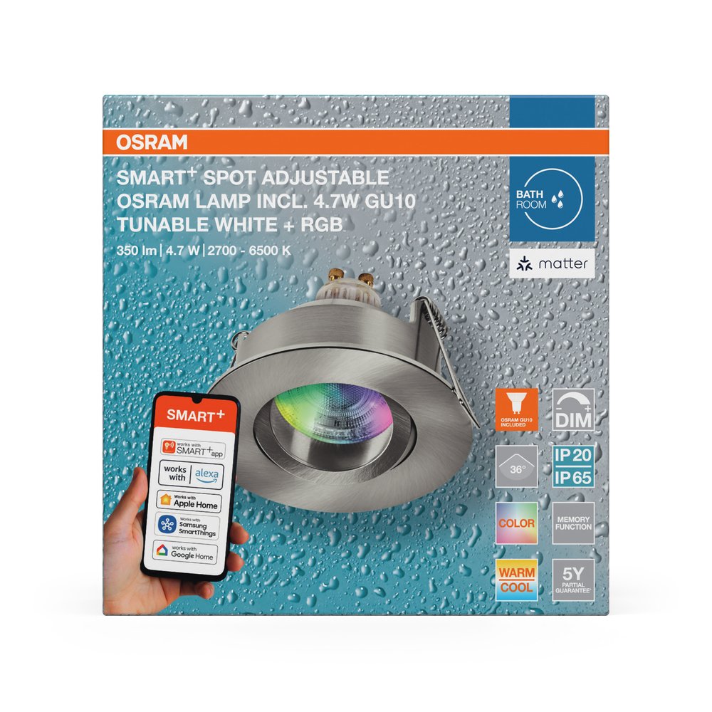 SMART+ MATTER LED Spot Recess GU10 Adjustable 4.7W RGBW Satin Nickel