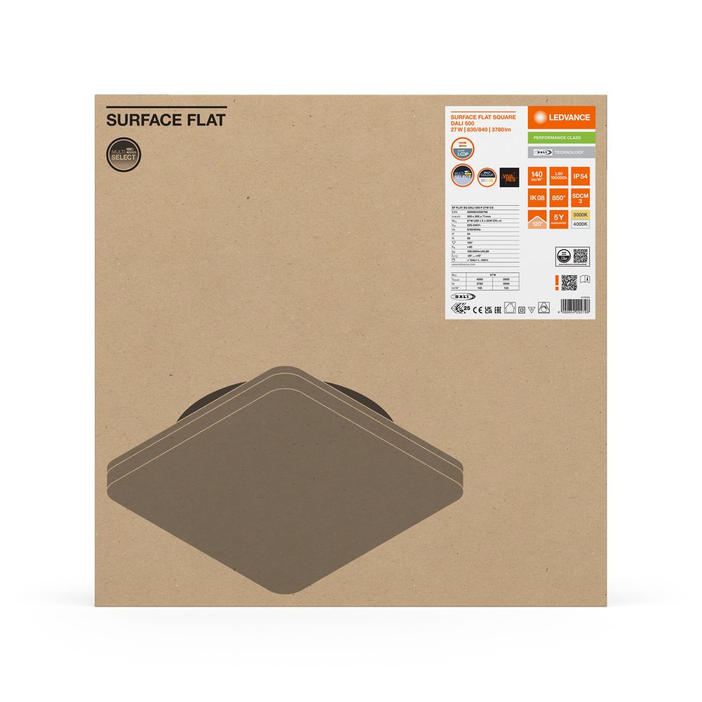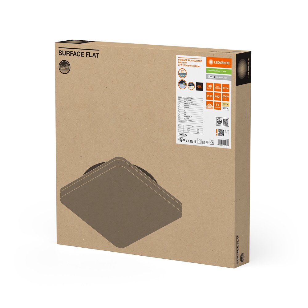Všestranné čtvercové nástěnné a stropní svítidlo s technologií DALI-2. Vlastnosti výrobku: Svítidlo s technologií DALI-2 připravené na IoT. Vhodné pro nouzové instalace s centrální baterií podle EN 60598-2-22. Typ krytí: IP54 (stěna a strop). Odolnost proti nárazu: IK08. Životnost (L80/B10): 100 000 h (při 25 °C), (L90/B10): 50 000 h (při 25 °C). Polykarbonátové (PC) pouzdro, PC-difuzor. Okolní teplota při provozu: –20…+45 °C. Zkouška žhavou smyčkou v souladu s IEC 695-2-1: 850 °C. 5pólová svorkovnice, průřez kabelu do 5 x 2,5 mm². Možnost kabelového propojení. Pouze pro vnitřní použití, nevhodné pro venkovní použití. Výhody výrobku: Snadná upgradovatelnost světelného zdroje, driveru a senzoru (design EVERLOOP). Vhodné svítidlo pro VIVARES a další systémy řízení osvětlení DALI-2. Vysoce univerzální díky volitelnému CCT (Multi Color) na driveru. Vnitřní svítidlo s vysokou světelnou účinností až 140 lm/W. Vysoká barevná konzistence s SDCM 3. Elektrické propojení bez použití nářadí díky zasouvacímu konektoru. Velmi homogenní svítidlo s mírným efektem podsvícení. V provedení s DALI jsou k dispozici rozšířené služby jako např. sledování spotřeby energie a dálková údržba. 5letá záruka. Oblasti použití: Přímá náhrada za přisazená svítidla s integrovanými CFLni výbojkami. Chodby. Schodiště. Koupelny. Vestibuly. Výbava / příslušenství: svítidlo EVERLOOP: dostupné upgrady a výměny. Ozdobný stříbrný rám je k dispozici samostatně.