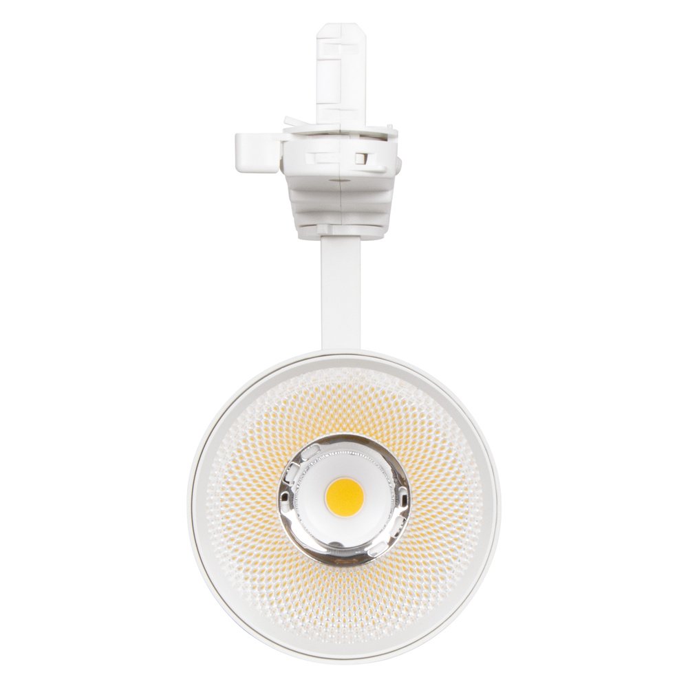 Třífázové bodové svítidlo s vyměnitelným reflektorem. Vlastnosti výrobku: Kompaktní bodové svítidlo Tracklight Spot s in-track předřadníkem. Úhel otáčení: 350 °, úhel sklonu: 90 °. K dispozici s teplotou světla 3 000 K nebo 4 000 K. Index podání barev CRI 90. Výchozí konzistence barev: ≤ 3 SDCM. Vybaveno reflektory s vyzařovacím úhlem 24 °. Odolné tělo z tlakově litého hliníku. K dispozici v matné bílé (jako RAL9003) a matné černé (jako RAL9005). Účinnost svítidla: až 120 lm/W. Výhody výrobku: Reflektor je snadno vyměnitelný díky bajonetovému uchycení a pryžové přísavce. Díky minimalistickému designu nedochází k odvádění pozornosti vlivem osvětlených objektů. Světlo s nízkou úrovní blikání díky speciálnímu předřadníku. Spolehlivé snížení oslnění (UGR ≤19). Oblasti použití: Přímá náhrada za svítidla používající HID světelné zdroje. Zvýrazňující osvětlení. Galerie, muzea. Obchody, převlékací kabiny, výlohy. Hotely, restaurace. Výbava / příslušenství: Jako příslušenství jsou k dispozici reflektory s úhlem vyzařování 15°, 36° nebo 50°. Bezpečnostní informace: Všechna elektrická připojení musí provést kvalifikovaná osoba.. Pozor – nebezpečí úrazu elektrickým proudem..