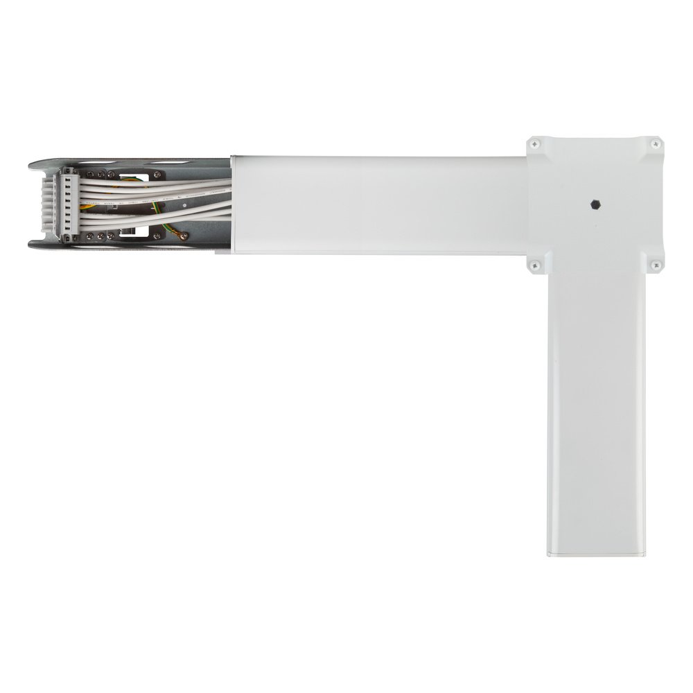 Spojka líšt v tvare L pre rohy. Vlastnosti výrobku: Priechodný s 5- alebo 8-žilovým káblom. Spojovací konektor sa skladá z aspoň jedného napájača a jedného výstupu s priechodným zapojením. Telo z oceľového plechu. Výhody výrobku: Jednoduchá inštalácia.
