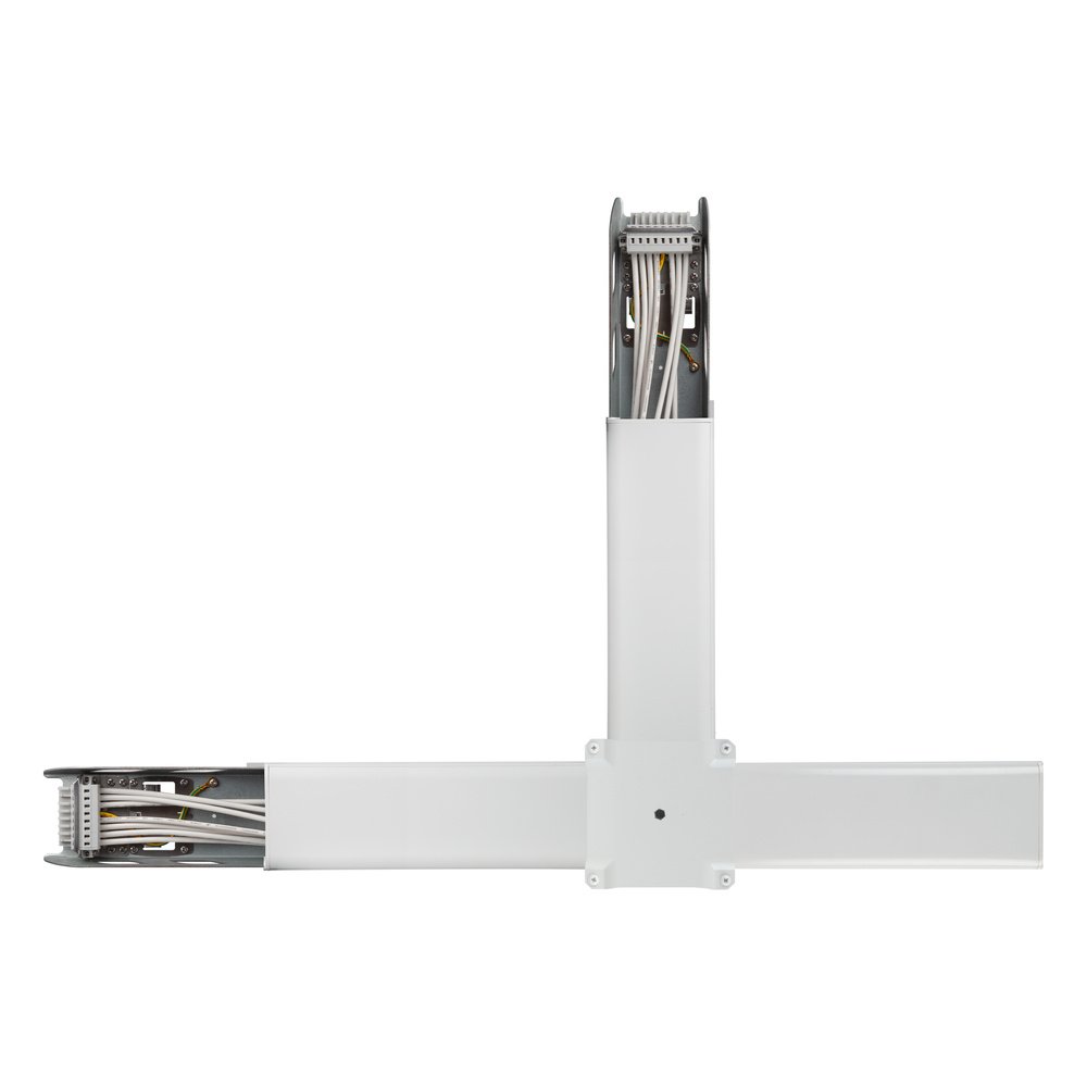 Lištová spojka v tvare T pre rohy. Vlastnosti výrobku: Priechodný s 5- alebo 8-žilovým káblom. Spojovací konektor sa skladá z aspoň jedného napájača a jedného výstupu s priechodným zapojením. Telo z oceľového plechu. Výhody výrobku: Jednoduchá inštalácia.