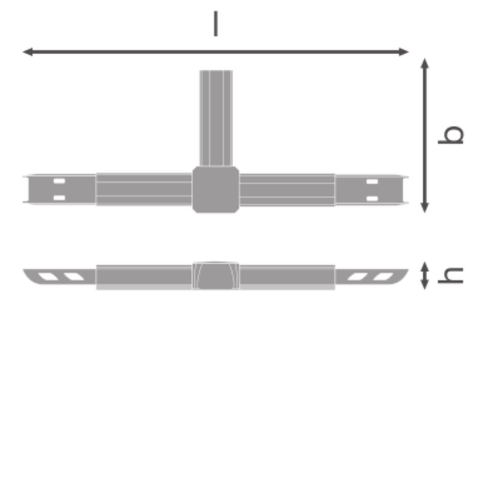 Lištová spojka v tvare T pre rohy. Vlastnosti výrobku: Priechodný s 5- alebo 8-žilovým káblom. Spojovací konektor sa skladá z aspoň jedného napájača a jedného výstupu s priechodným zapojením. Telo z oceľového plechu. Výhody výrobku: Jednoduchá inštalácia.