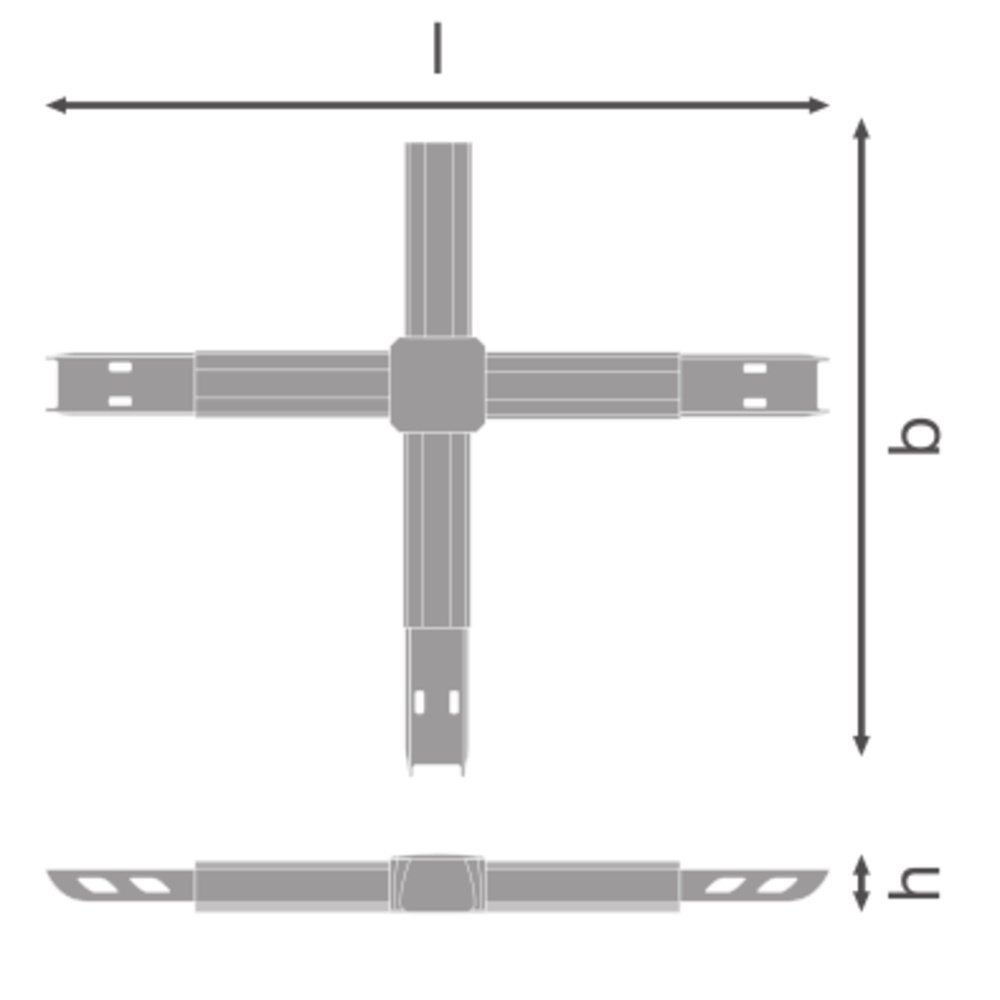 Lištová spojka v tvare X pre rohy. Vlastnosti výrobku: Priechodný s 5- alebo 8-žilovým káblom. Spojovací konektor sa skladá z aspoň jedného napájača a jedného výstupu s priechodným zapojením. Telo z oceľového plechu. Výhody výrobku: Jednoduchá inštalácia.