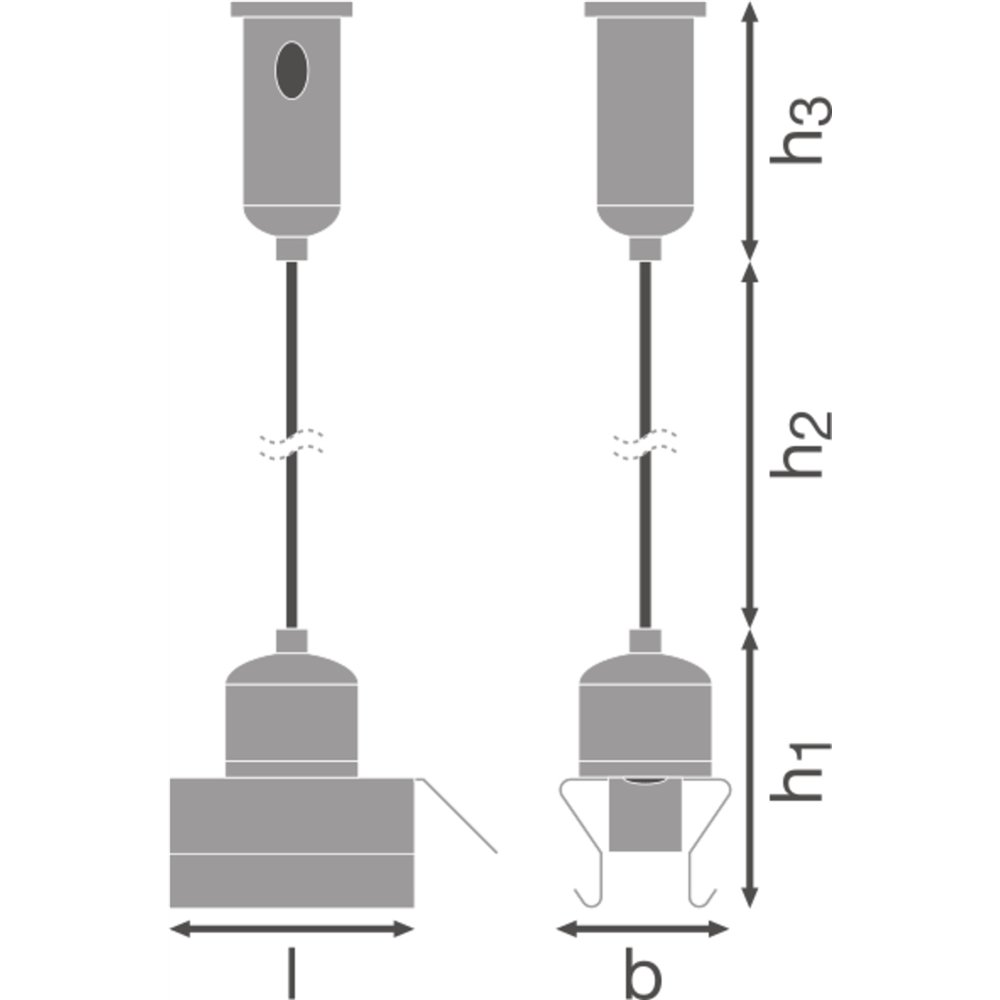 Zavesenie pre montážnu lištu. Vlastnosti výrobku: Sada dvoch nastaviteľných závesných systémov. Nastaviteľný oceľový drôt, maximálna dĺžka 3 m.