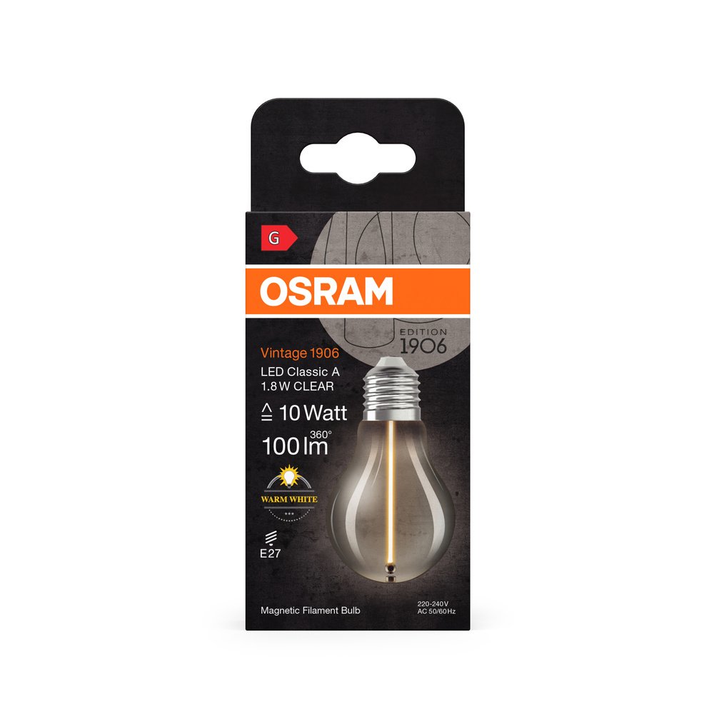 Vintage 1906® LED CLASSIC A, Globe and EDISON WITH FILAMENT-MAGNETIC STYLE 1.8W 827 Clear E27