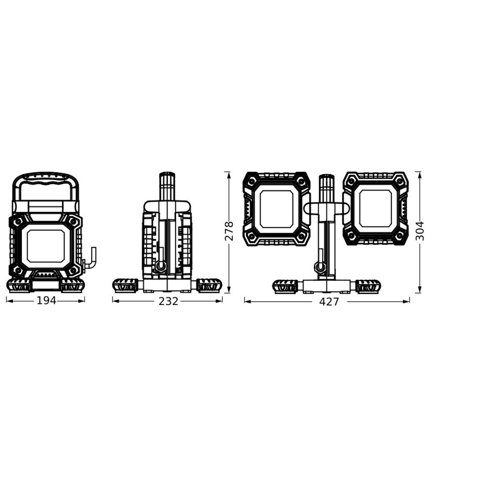 Pracovný svetlomet s 270° vertikálnou a 180° horizontálnou otočnou hlavou.